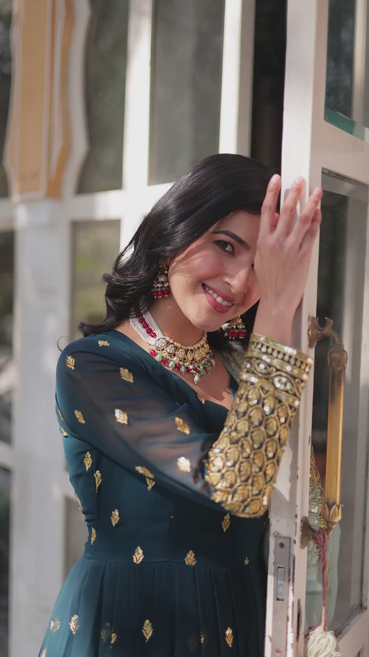 👉🏻 FABRIC & WORK:- Faux Blooming with Embroidery Zari Sequins-work